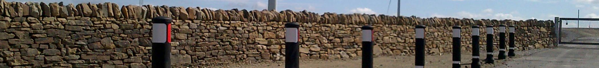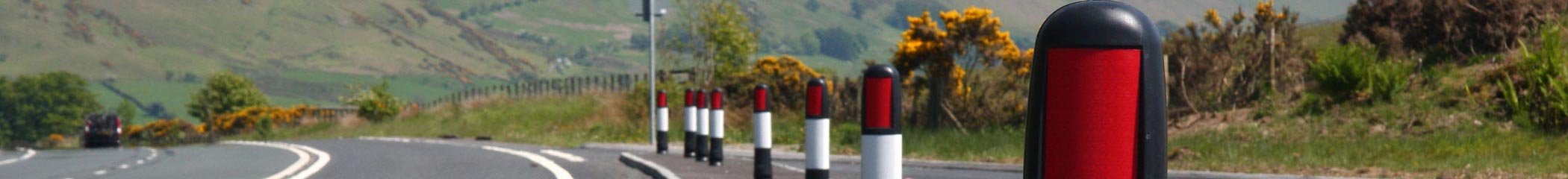 Gama słupków plastikowych od Glasdon ze znakami i odblaskowymi elementami do stosowania na azylach drogowych, rondach, skrzyżowaniach i jako linie graniczne.